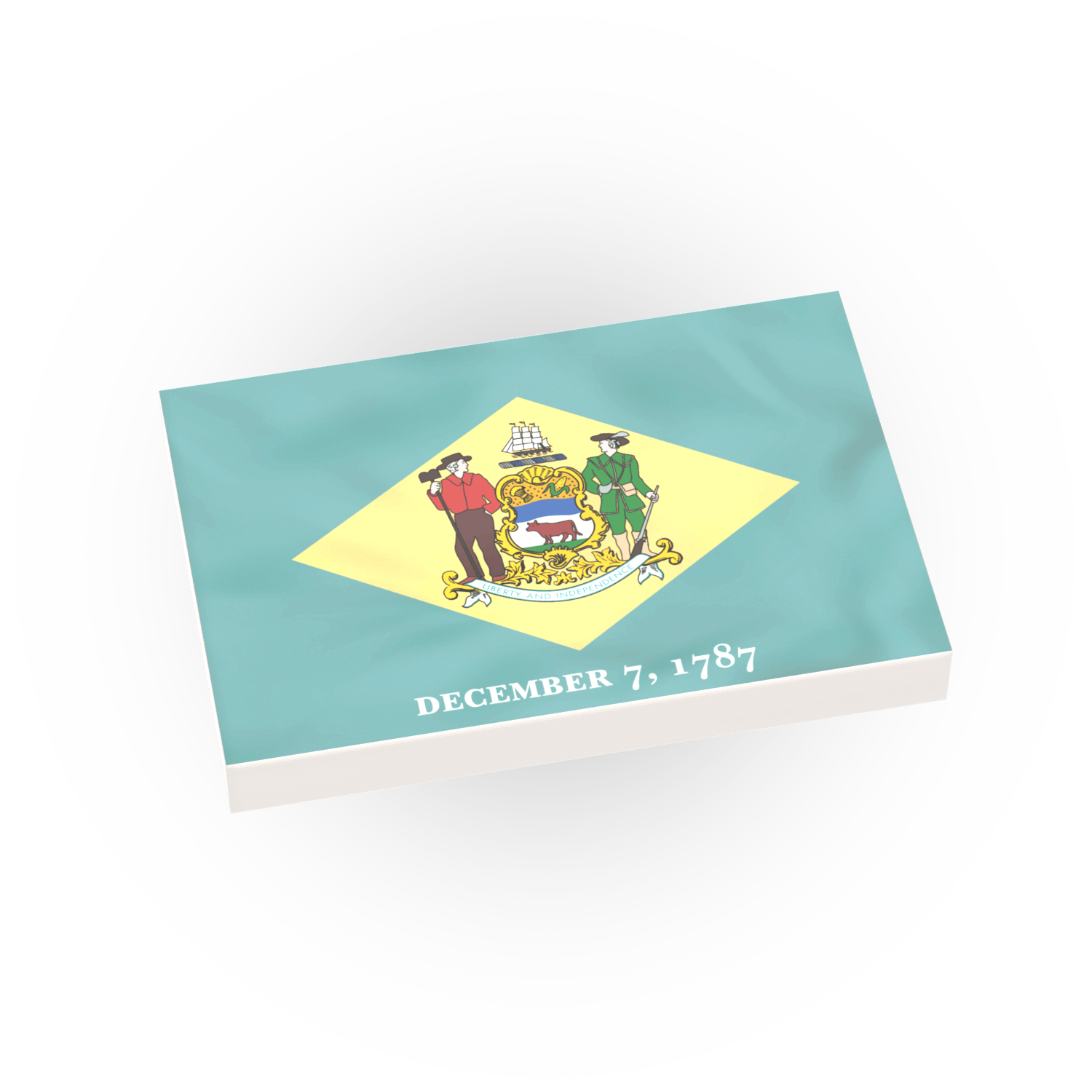 Show your Delaware pride with a custom printed Delaware state flag custom printed on a new LEGO® 2x3 white tile.