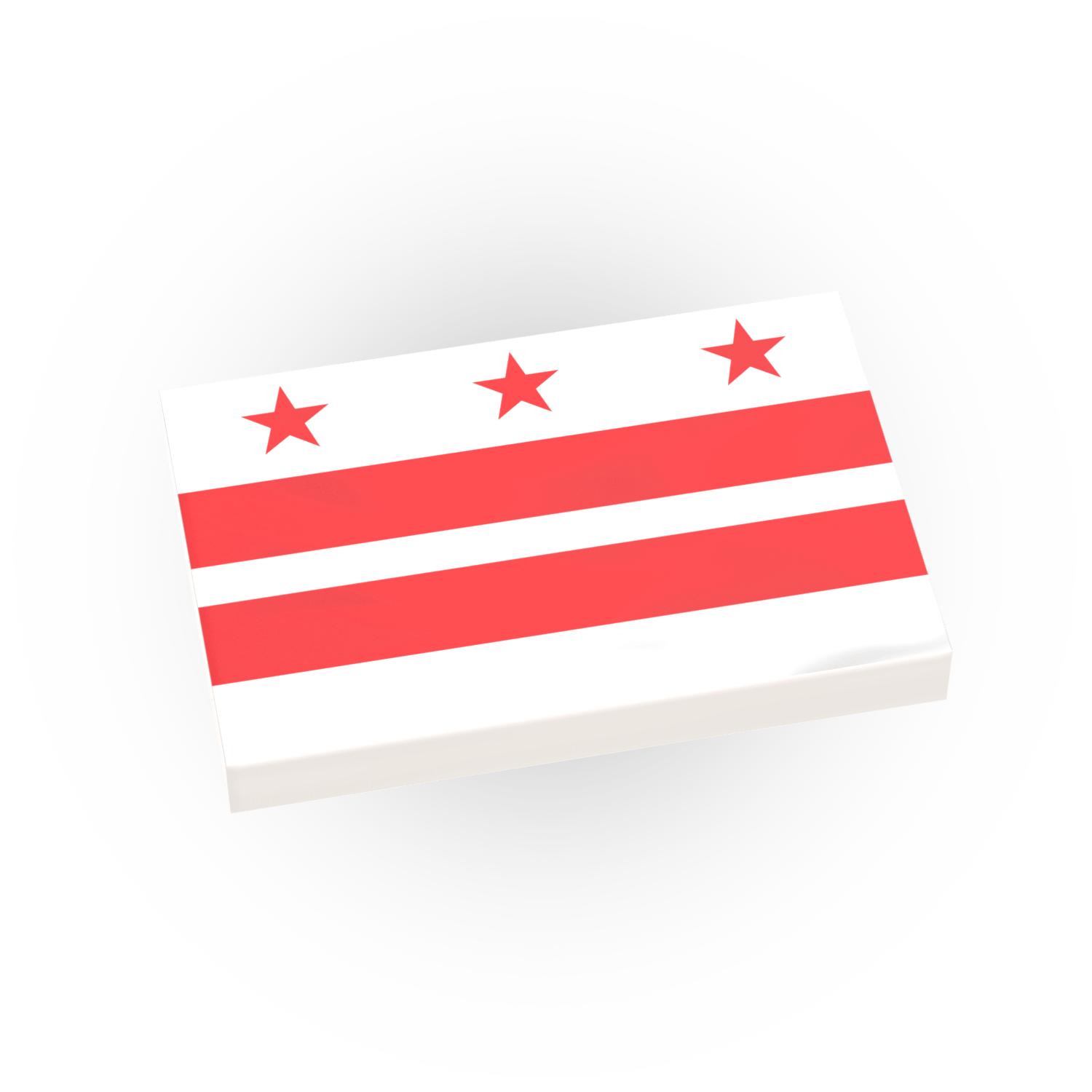 Show your District of Columbia pride with a custom printed District of Columbia state flag custom printed on a new LEGO® 2x3 white tile.