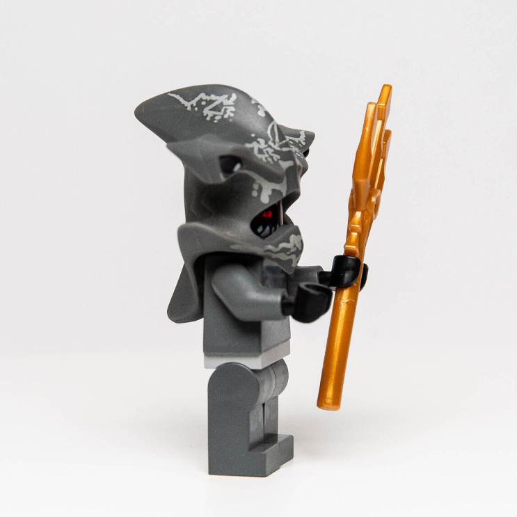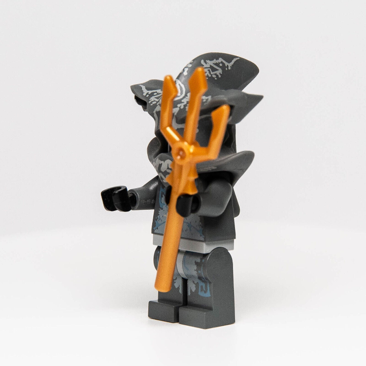 Minifigure of an Atlantis Hammerhead Warrior from retired Lego sets 7984 Deep Sea Raider and 7977 Seabed Strider in 2011. Comes with trident as shown.