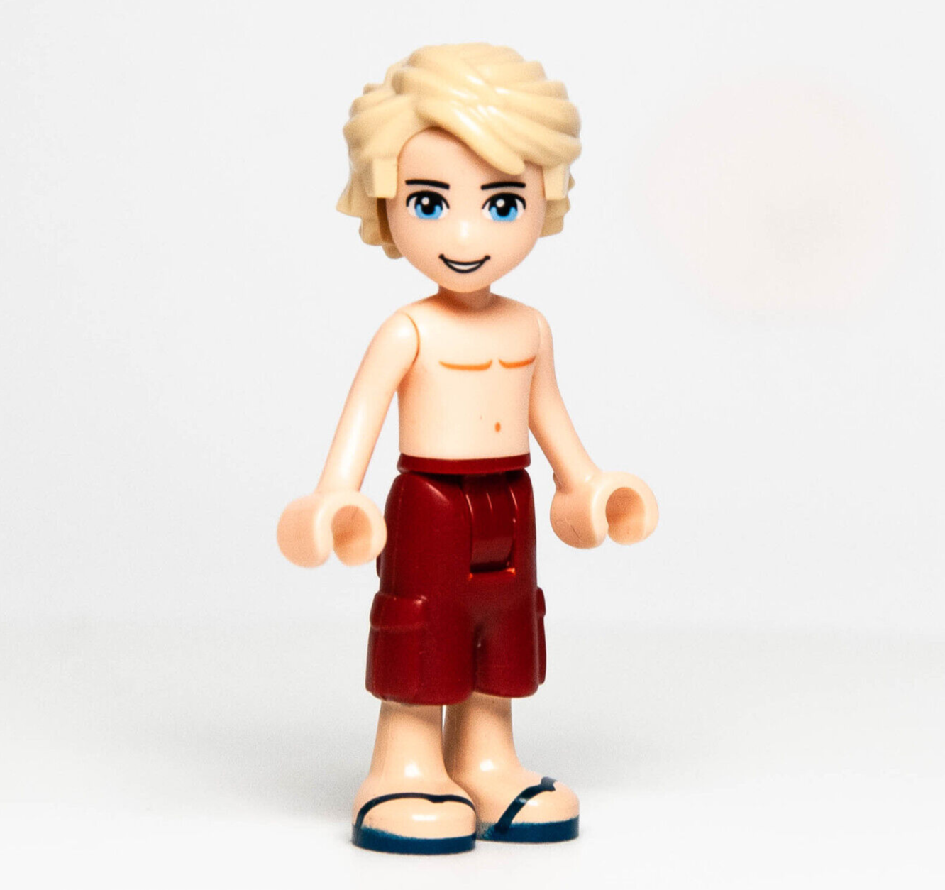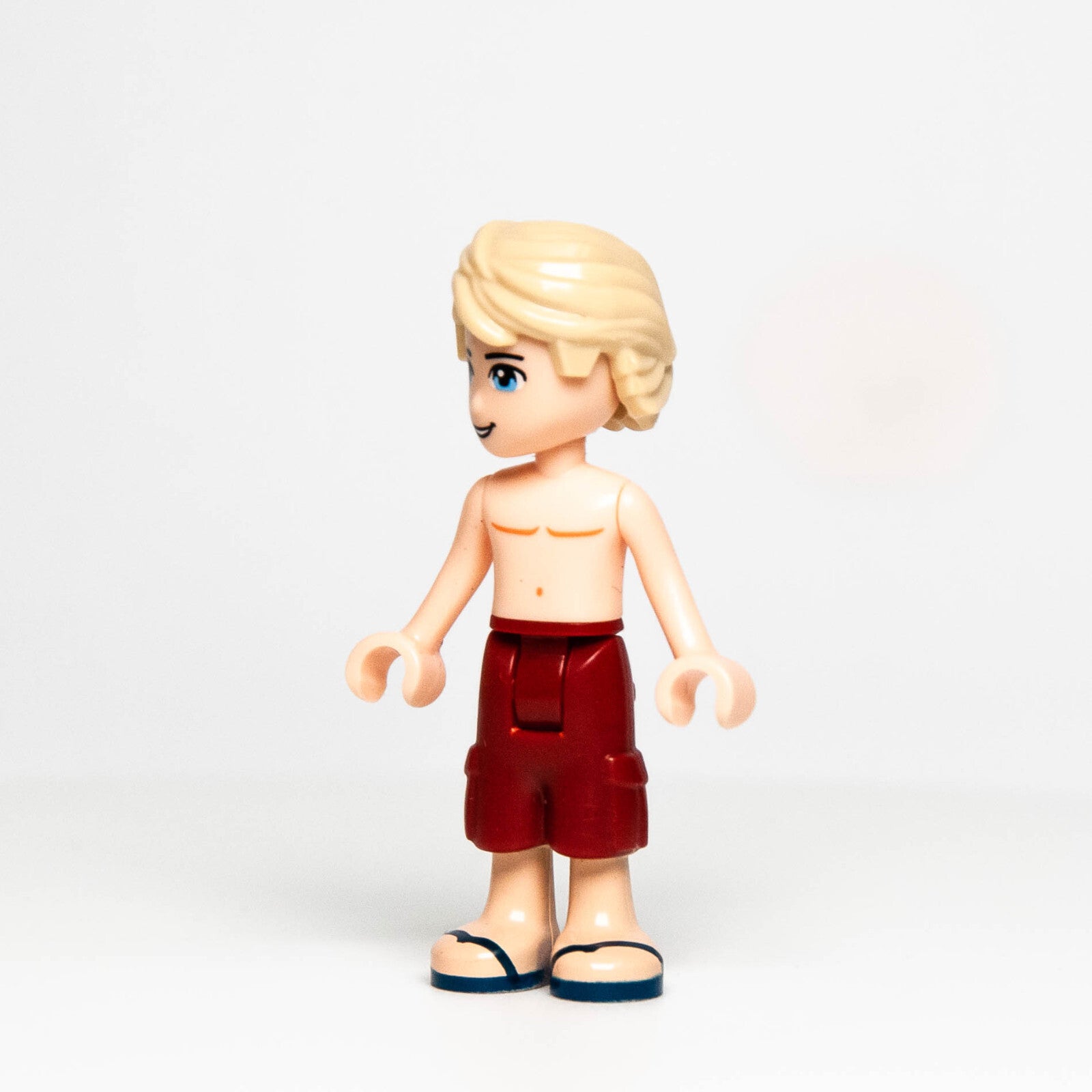 Used minifigure of Friends Mason - Dark Red Shorts, Shirtless from retired set 41347 Heartlake City Resort in 2018.