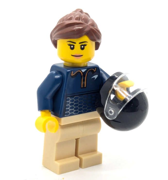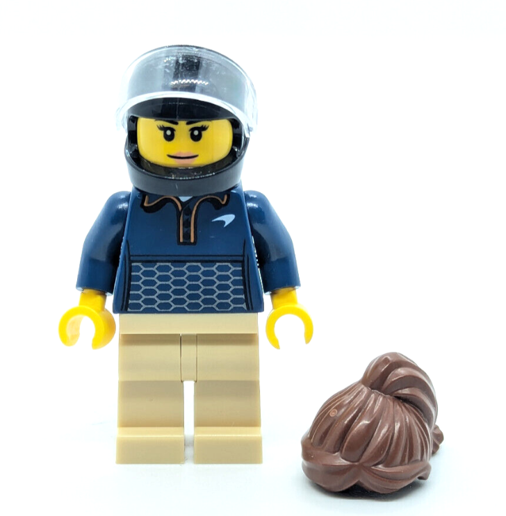Minifigure and accessories shown are from Lego set 76902 McLaren Elva. All parts are great condition and come assembled.
