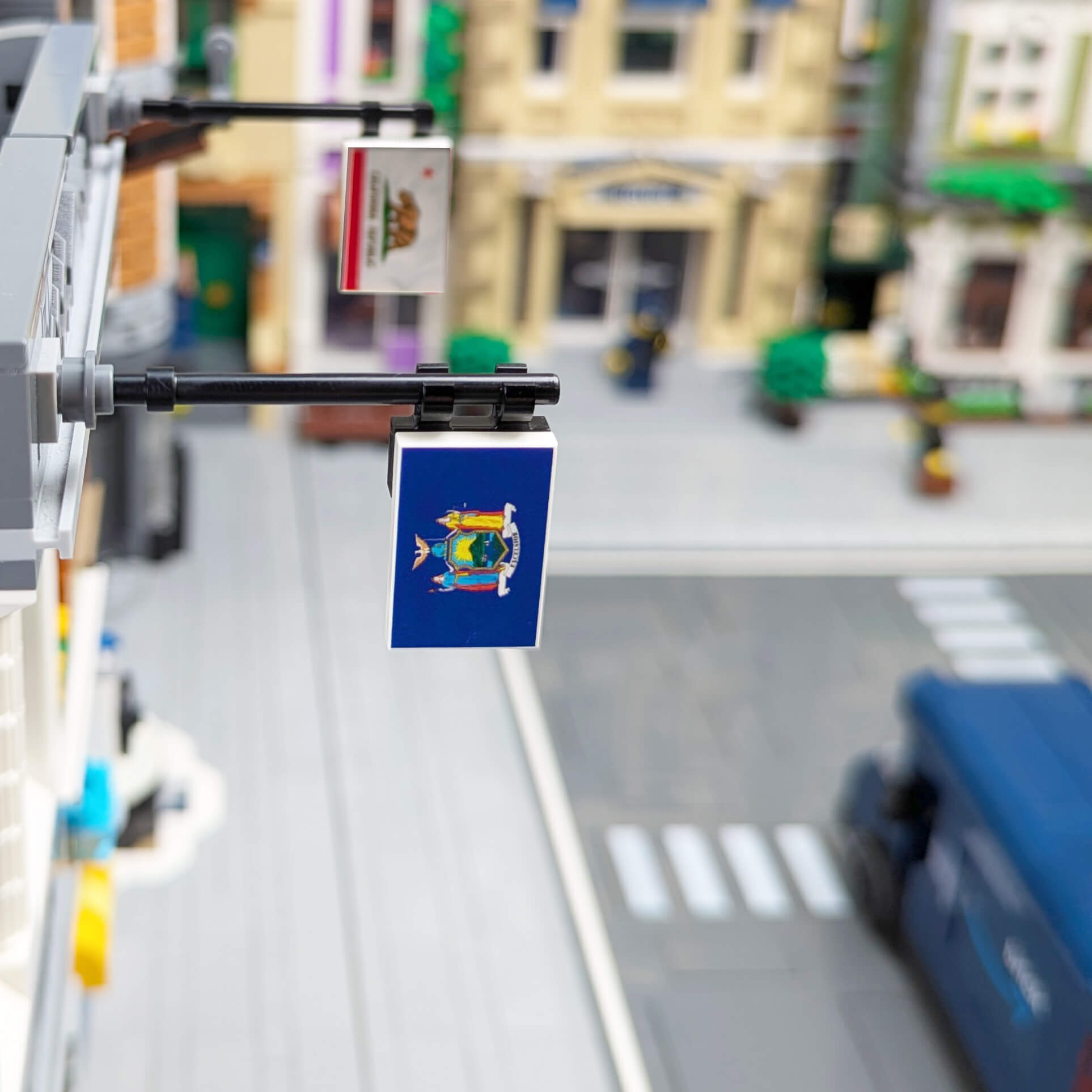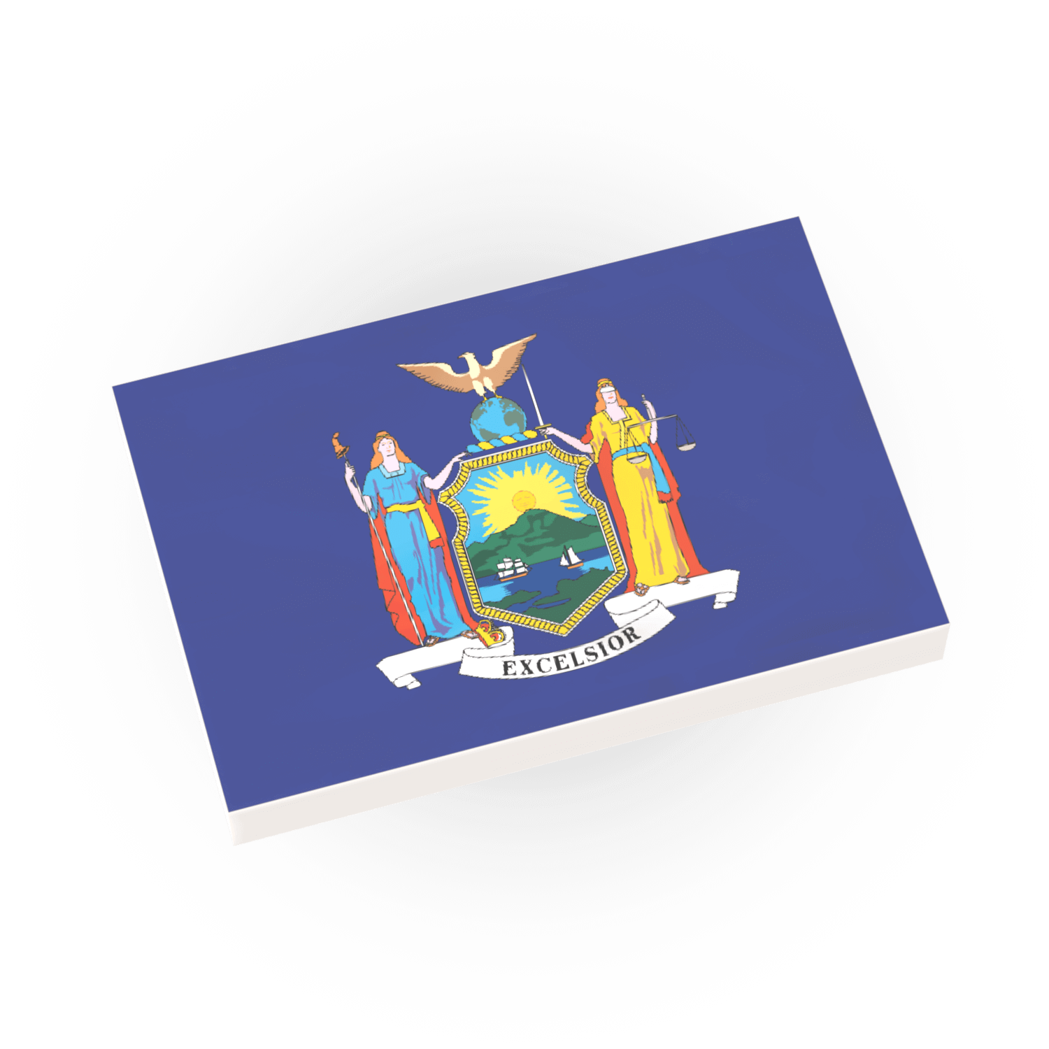 Custom printed New York state flag on a new LEGO® 2x3 tile.