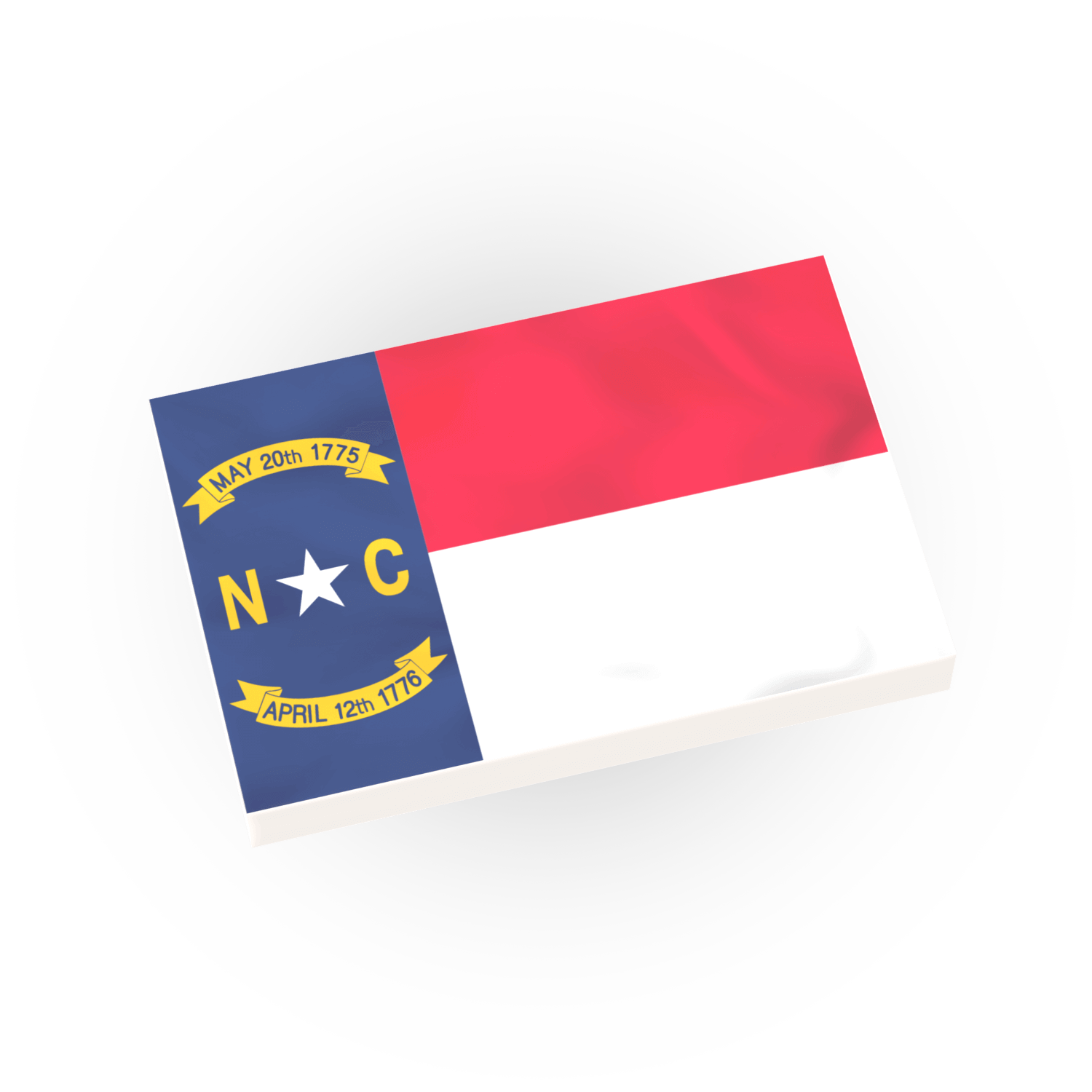 Bring a bit of Tar Heel spirit to your custom collection! This North Carolina flag tile displays the bold red, white, and blue banner with its historic dates and star.