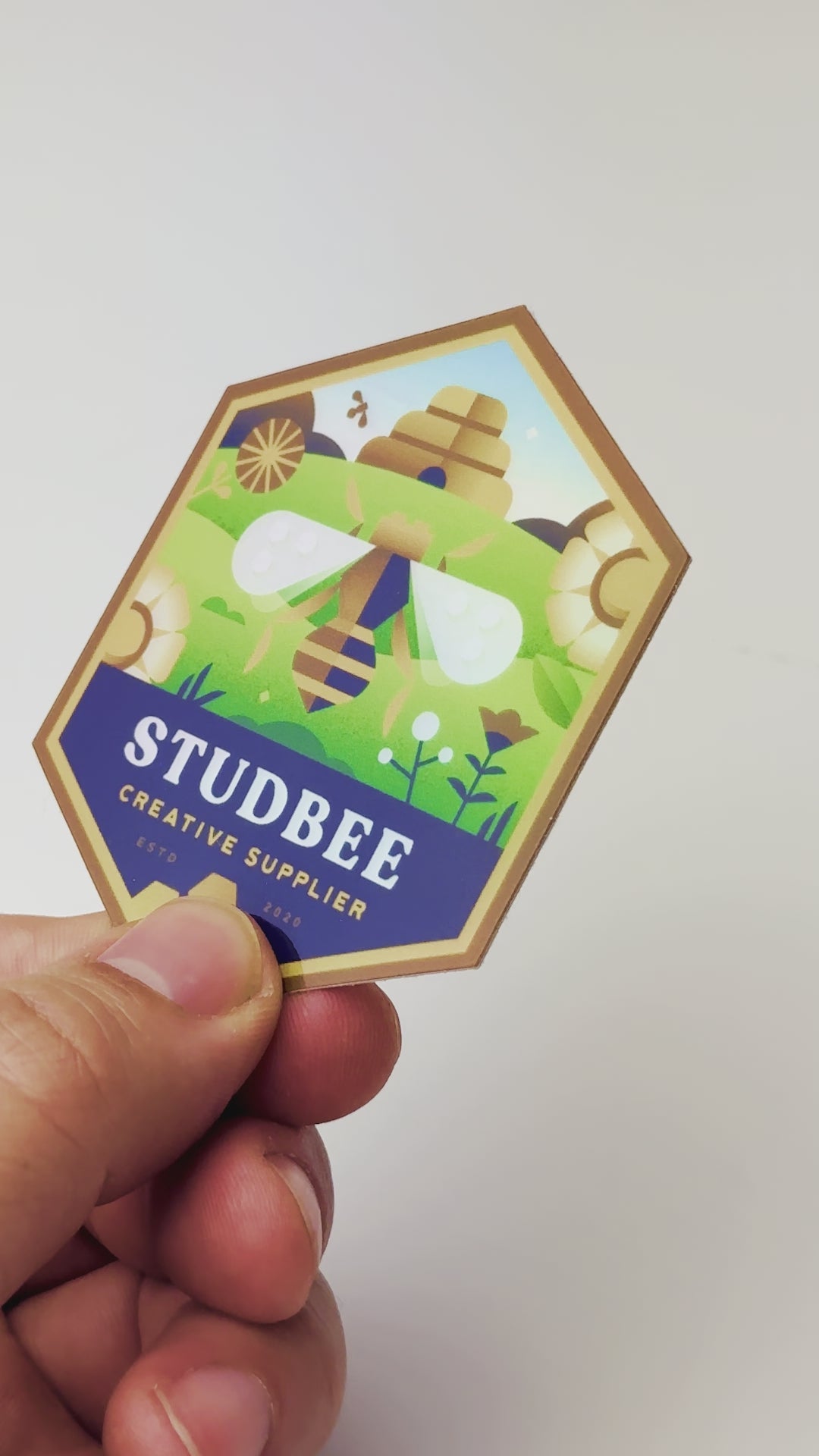Make a buzz-worthy addition to your belongings with our Studbee holographic logo.