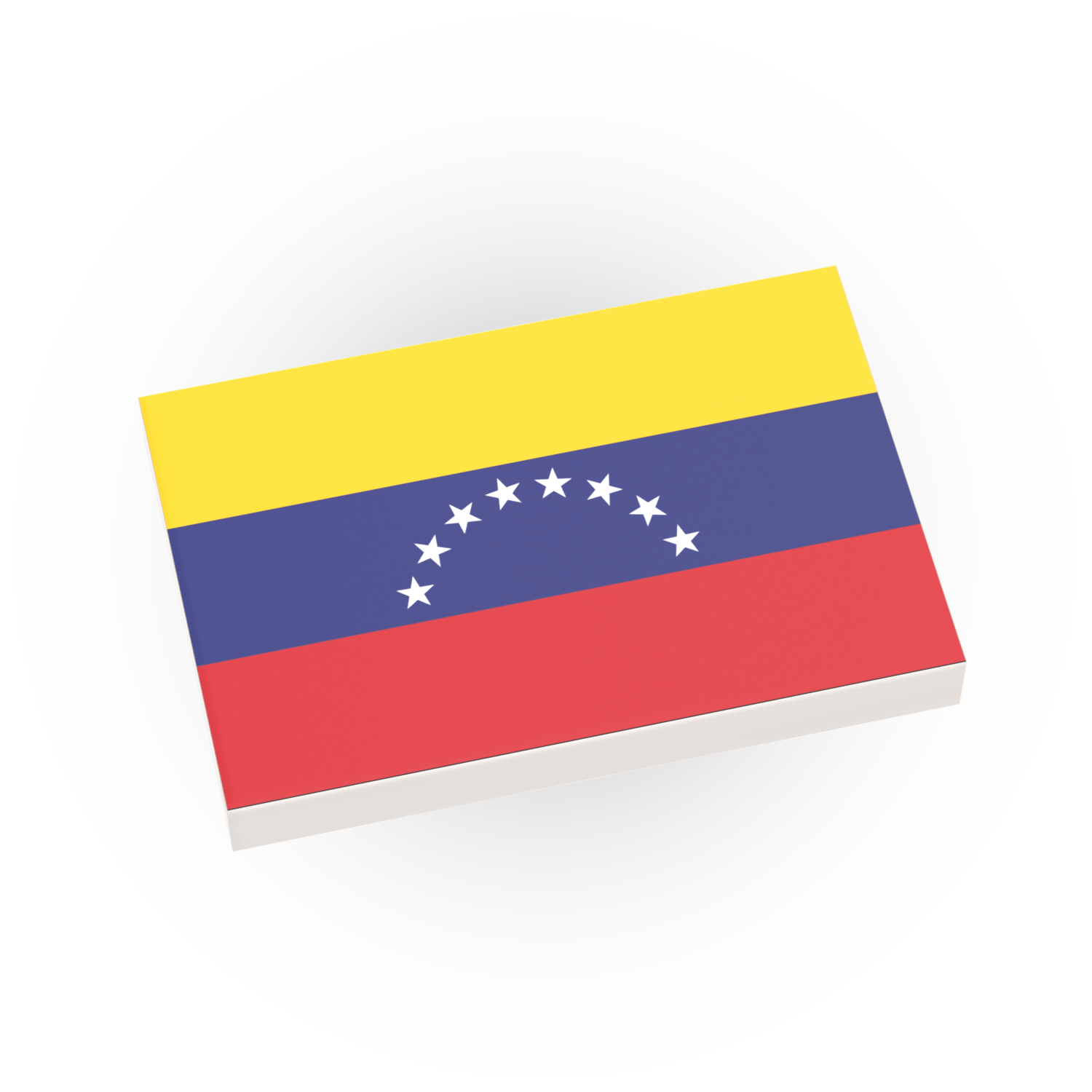 Bold and vibrant, this custom 2×3 tile captures the iconic tricolor of Venezuela — brilliant yellow, deep blue, and rich red with its signature arc of white stars. A perfect miniature tribute to Venezuelan heritage, pride, and history on your build.